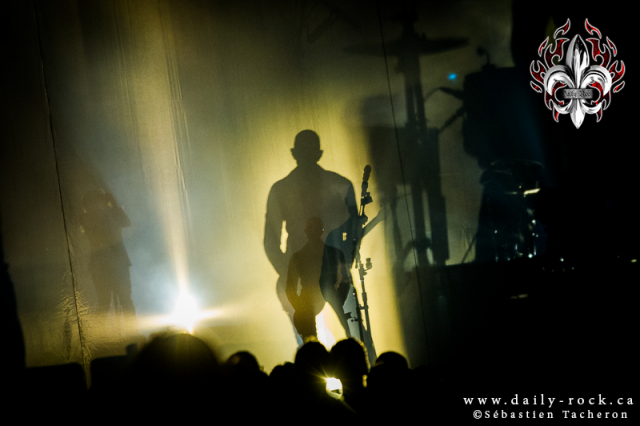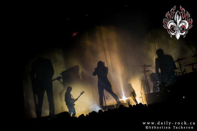 La musique est claire, juste, précise. À la première écoute, on se dit que le système de son dépasse en tout point celui du Centre Bell. La sono du concert de Tool était extrêmement brouillonne rendant à peine audible la voix de Maynard, ici, ce soir, tout au contraire la voix perce jusqu’au fond de l’amphithéâtre, on se demande même parfois s’il ne faudrait pas baisser son volume tellement elle est mise à l’avant-plan. Mais justement, personne ne s’en plaindra. Le groupe enchaîne plusieurs de ses succès durant le premier tiers du spectacle jusqu’à leur reprise, totalement unique, d’Imagine de John Lennon. Une petite accalmie au deuxième tiers de la soirée alors que le groupe interprète quelques pièces un peu plus mollement. On a vite l’impression d’être devant un peu de remplissage. Certaines pièces sont assez moyennes, il faut l’admettre. Avec seulement deux albums originaux, on ne pouvait s’attendre à deux heures de succès. Le dernier tiers du concert est venu rétablir les faits en démontrant tout le talent créatif et l’intensité d’un supergroupe comme A Perfect Circle. Une nouvelle pièce, très électro, voire quasi techno en a surpris plus d’un. Un moment qui m’a semblé étrange, un long long retour dans le passé dans la période de Filter, Orgy ou My Life with the Thrill Kill Cult. On se serait cru dans un remake du Corbeau (oh mais attend!?!). Après m’être gratté la tête deux minutes, un peu perplexe, j’ai fini par tout de même apprécier la pièce qui malgré son manque criant d’originalité propose un son différent de ce à quoi l’on pouvait s’attendre.