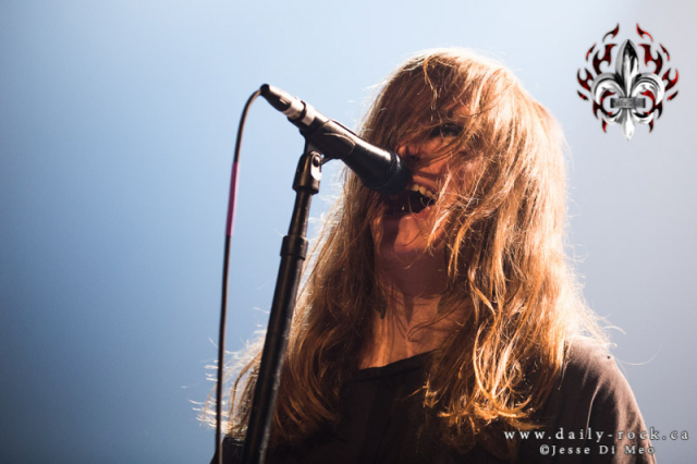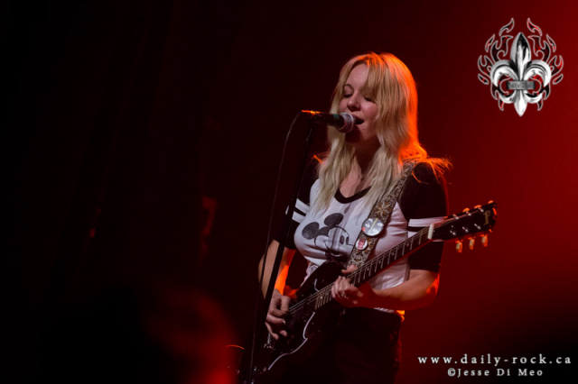 À notre grand plaisir, la qualité monte tranquillement d’un cran avec l’arrivée du groupe punk rock californien Bleached. La présence de deux filles sur la scène a de quoi réveiller les mâles dans l’assistance et créer une solidarité féminine avec les filles. J’avais l’impression qu’en plus des deux sœurs Jennifer et Jessica Clavin, respectivement au chant et la guitare, il avait une troisième dame à la basse. Pourtant, c’est ce soir un gars qui est aux quatre cordes. Quoi qu’il en soit, ce n’est pas lui qui fait le spectacle, car il ne bougera pas une fois de son emplacement et se contentera de jouer ses parties. Pour les trois autres membres, c’est toute une autre histoire. La guitariste à une fougue autant dans sa gestuelle que sur le manche de son instrument. Le batteur Nick Pillot n’est peut-être pas hyper technique, c’est du punk rock quand même, mais il est complètement déchaîné sur ses fûts. La plus charmante reste toutefois la chanteuse qui est heureuse d’être présente et le démontre par son enthousiasme et le grand sourire qu’elle aborde constamment. Si le tout à un petit quelque chose d’amateur, ce n’est rien pour refroidir la foule. La finale est de toute beauté avec Jennifer et Nick qui échange de place. Ce dernier n’est pas vilain à la guitare et mademoiselle se révèle une batteuse redoutable.