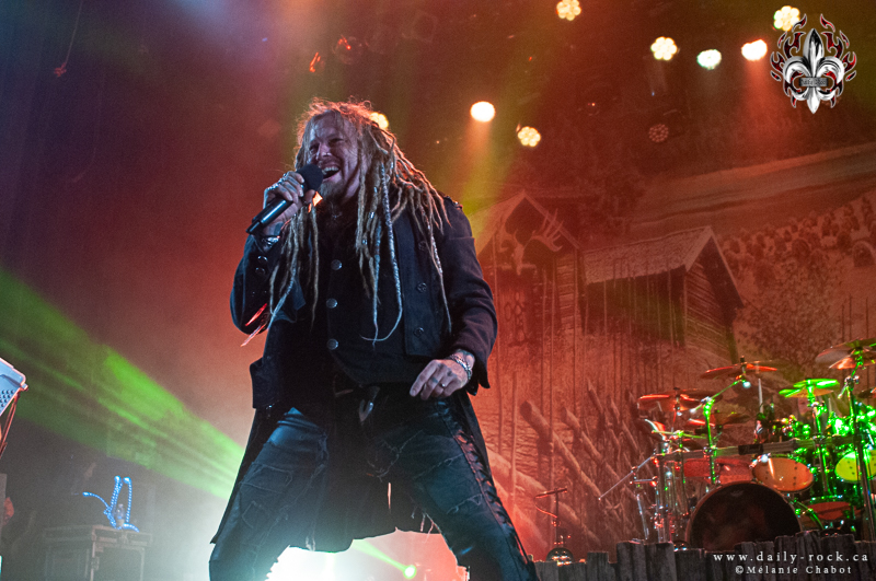 C’est avec un peu de fatigue, mais beaucoup de joie que nous avons vu arriver le dernier groupe de la soirée. Eluveitie n’était pas venu en sol montréalais depuis un long moment et le chanteur a même dit que «ça faisait beaucoup trop longtemps qu’ils n’étaient venus nous rendre visite». Le groupe a joué plusieurs de ses succès tels que: King et L’appel des montagnes (jouée en français). Ils ont terminé la soirée avec leur grande chanson tant attendue: Inis Mona. C’est un énorme plaisir d’assister à un spectacle d’Eluveitie. Leur musique est à la fois festive, captivante et envoûtante. Le fait qu’il y ait tant d’instruments différents tels que la harpe, la vielle à roue, la mandoline, la flûte, le violon font en sorte que les sonorités sont plus complexes et magnifiques. J’espère sincèrement qu’ils seront de retour bientôt.
