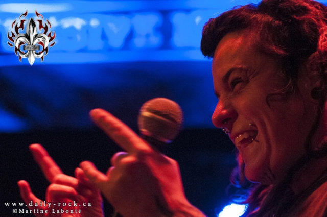 Ça a commencé avec Dissidence, un groupe de Montréal formé de cinq membres. Une formation punk montréalaise, qui chante en français. Le chanteur Math Frakas est accompagné de sa bande, Swixx, Fabio, Karl et la seule fille du groupe Kath à la guitare. Ils ont offert un show qui a vite fait de remplir la salle. Le second groupe a se présenter sur scène était Offensive Mindset. Avec Lana Jobin à la barre du groupe, Offensive Mindset est une formation punk formée aussi de Michel Gagné, autre chanteur, Rémi Bacon, Bruno Tellier, Patrick Rebmann et Paul Cormier. De Berthierville, les six membres proposent des chansons en français et en anglais. La voix de Lana Jobin est unique et puissante et donne une saveur intéressante au groupe.