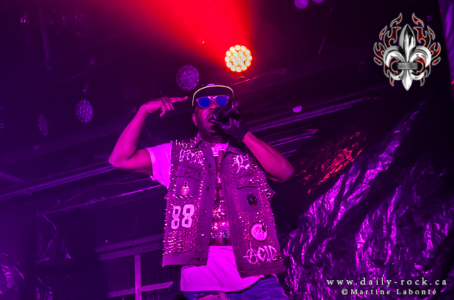 Un bref mot sur les premières parties qui ont férocement diverti la foule avec chacun un Rap de qualité dans la veine de ce que pourrait produire Psychopatik Records. Reservoir Doggs était un choix tout à fait judicieux qui a sans contredit convaincu plusieurs. Les rappeurs locaux de Pimp Bizkit ont particulièrement réussi à préparer la foule à ce qui s’en venait avec leur juste interprétation de plusieurs chansons importantes du mouvement Hip-Hop. Esham, un précurseur de la scène Rap de Détroit, a suivi avec une performance d’une grande intensité et une énergie envoûtante.