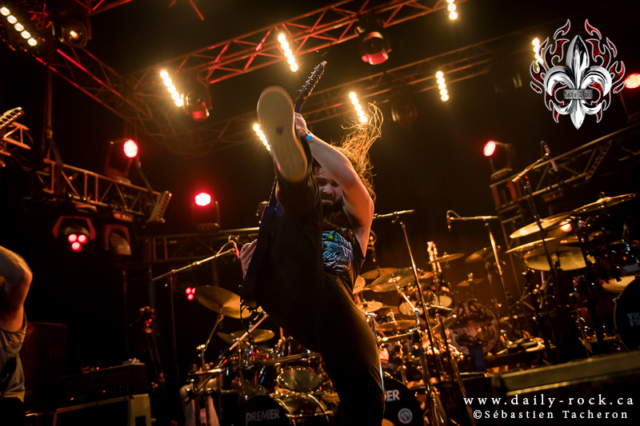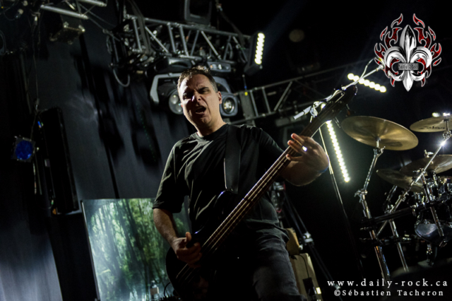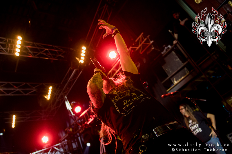 Puis vint le moment tant attendu. Marc Vaillancourt vint sur la scène saluer les gens et nous adresser une couple de TABARNAK bien placés. Il a bien vieilli depuis la dernière fois que je l’ai vu. Il semble en pleine forme et affiche une mine souriante et accueillante. Ce bon vieux routier du métal et de la scène punk de Montréal en a vu passer des trains… Ils nous offrent une brochette de titres faisant honneur à la carrière du groupe. Des pièces plus récentes de leur excellent dernier album Mantra, en passant par l’album Catharsis et surtout leur album culte, Tumulte. Afin de pallier aux vieux fans comme moi, ils jouèrent Artificial Peace, la puissante reprise de Plume Latraverse, Mouton Noir, leur hymne à la pauvreté et problème sociaux, Wo Wo Tabarnak, ainsi que la reprise de Damnation, le petit poisson. Il ne m’en filait pas plus pour me faire aller comme un sauvage et de scander ces hymnes qui ont bercé ma jeunesse de jeune rebelle tapochant sa basse afin de crier haut et fort combien la musique est un bel exutoire et un défoulement hyper positif, ce que la foule démontra à tous ce soir-là…!