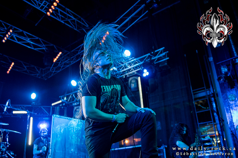 Ensuite une odeur de putréfaction emplit la salle (au sens figuré!) avec la venue de Necrotic Mutation. Mr Croteau s’empara de la salle vêtu d’une camisole de force et armé d’un regard de folie et de plaisir. Nous avons eu droit à une panoplie de titres explorant leur carrière entière donc The Mask of Hunacy et Day of Mourning, dans mes titres préférés. De beaux souvenirs de mes escapades à Rimouski vers 1995-2000 refirent surface. Et je crois que je n’étais pas le seul; les gens croisaient leur regard et échangeaient des sourires de satisfaction. Une superbe audience motivée et engagée.