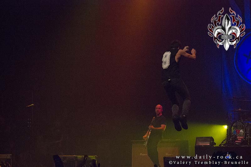 Finalement, les vedettes de la soirée tant attendue et scandée sans cesse pendant les entractes: Simple Plan. Le groupe nous offrait l’intégral de No pads, no helmets… just balls, afin de célébrer le 15e anniversaire de l’album. Ils ont été généreux de par leurs interventions pendant le spectacle avec la foule. Pierre a même blagué sur les plus jeunes présents au spectacle en disant qu’il n’était probablement pas né lorsque l’album est sorti ou qu’ils étaient très jeunes. Vers le milieu du spectacle, Pierre et Chuck ont échangé de place afin de réaliser leurs «’rêves»’ respectifs! En plus, Chuck nous a fait l’honneur de ses bons vieux «stage dive».