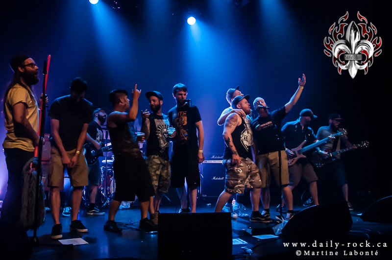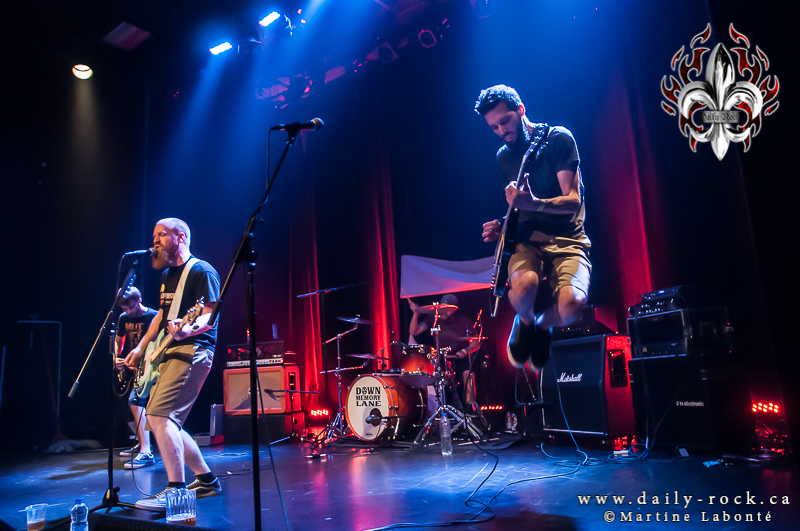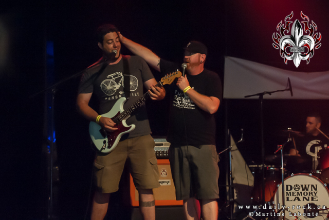Difficile de ne pas apprécier le BBQ et Gilbert en arrivant! C’est ensuite avec un immense plaisir que j’ai pu assister aux performances de : Splintered Fate, Sidelines, These fast times, L’affaire Pélican, No real hero, Route St-Louis et Down Memory Lane. Le genre de soirée où tous les groupes terminent sur scène ensemble, c’est toujours agréable!