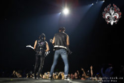Seventh sun est selon moi le moment le plus faible de la soirée, mais on se rattrape vite avec Pacemaker suivi de Bad Boys Running Wild et c’est là que la soirée a vraiment débuté. L’énergie change totalement dans la foule à ce moment, on passe du divertissement à une foule investie et prête à passer une superbe soirée où s’en suivrons Send Me An Angel , Wind Of Change dédié à nos amis de l’Ukraine et ça chante fort. S’enchaine ensuite, Tease Me , Please Me, Rock Beleiver, Pour ensuite faire place à un solo de batterie. Qu’il est bon ce Mickey Dee, quelle énergie. Wow! Durant son solo l’écran devient une machine a sous et on comprend que cela ne se terminera pas jusqu’autant que les cinq combinaisons ne s’alignent pas sur les scorpions, mais on en profite pour faire un clin d’œil à Lemmy ce que j’ai beaucoup apprécié.