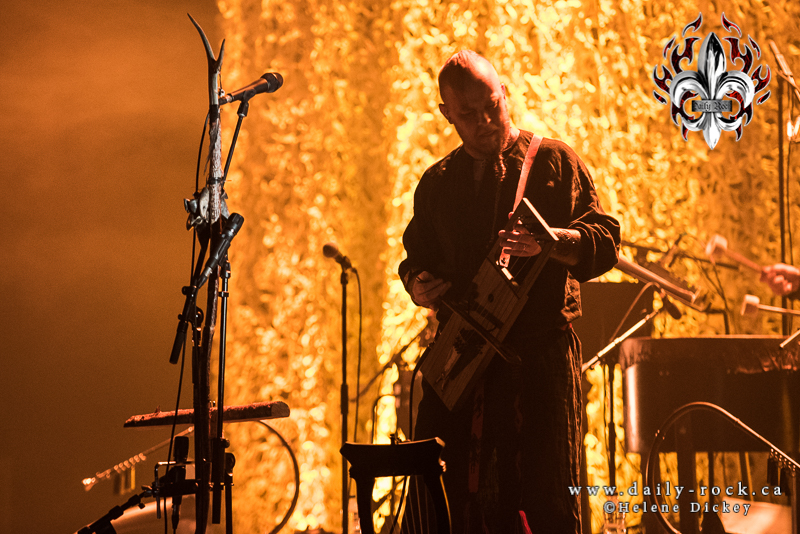 Dès le début du spectacle, Wardruna détone visuellement. Le groupe entame leur performance avec la chanson Tyr, qui se démarque par la présence de deux Lure scandinaves. Ces immenses instruments datant de l’âge du bronze sont les seules choses que nous distinguons sur scène, le reste des musiciens demeurent dans l’ombre pour la durée de la chanson. Le ton est donné pour la soirée.