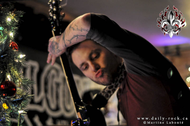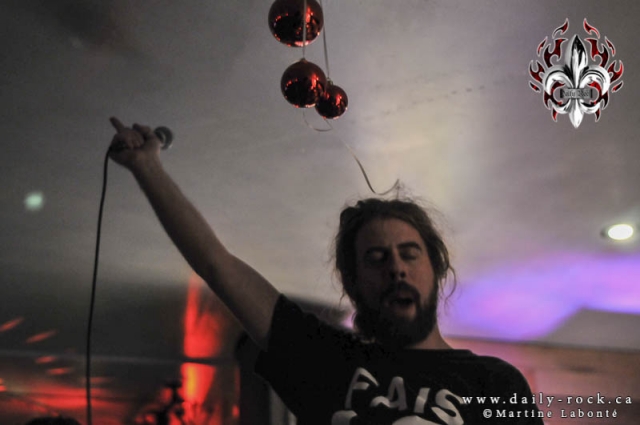 On enchaine, on enchaine, produits par Musique Néfaste, tout comme la soirée, CODE 40-11 qui jouait après, donnait leur avant-dernier show de l’année. L’avant-dernier aussi avec leur guitariste Mat Laroche qui quitte le groupe après les fêtes! Dans le décor déjà festif du Bistro, les trois Mat et Pete nous en ont mis plein les oreilles! Du punk qui sonne et qui nous amène tranquillement au dernier band de la soirée….