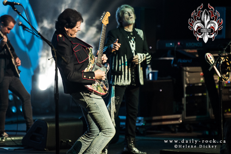 C’est d’ailleurs avec la chanson Cinéma que le spectacle s’amorce. La chanson est bien exécutée, mais le son n’y est pas. Le tout est brouillon et pas très défini il n’y a donc pas l’impact souhaité. Ça ne dérange cependant nullement les fans. Ils sont là et se délectent et le démontrent avec fort volume.